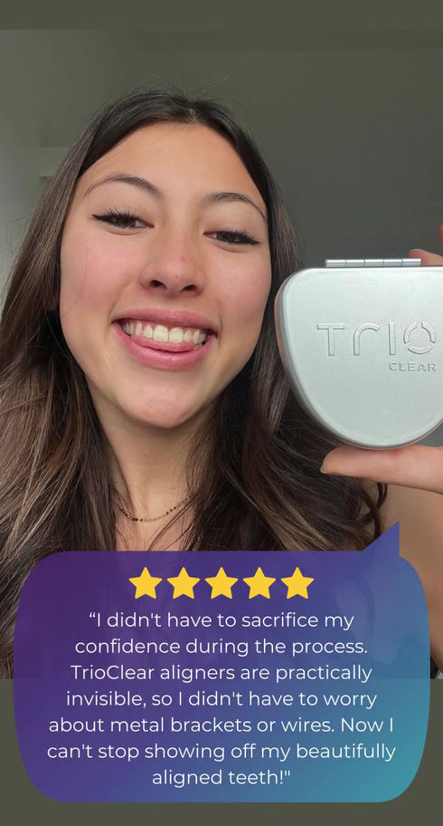 TrioClear represents a revolutionary advancement in dental clear aligners, designed to innovate and enhance the orthodontic treatment process. These aligners are nearly invisible and work by utilizing a series of custom-made, removable trays that gradually shift your teeth into their ideal positions. Comfortable, safe, and virtually undetectable, TrioClear transforms your smile seamlessly, all in just two simple steps.